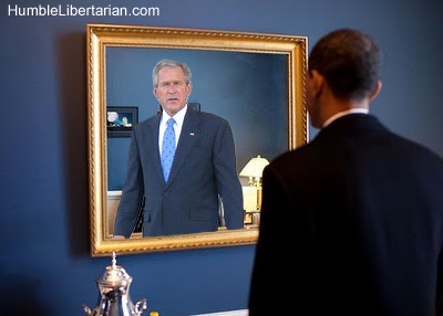 More of the same. A LOT more of the same. In fact, every negative aspect of the Bush Administration has come back with a vengeance in the presidency of Barack H. Obama. Everything the American people detested so strongly about Bush has not only characterized the presidency of his successor, it's gotten much worse. Don't believe me? The following is a list of 100 ways President Obama is just like President Bush. We might as well consider it a third Bush term on steroids, or call Mr. Obama "Bush 2.0." If you honestly didn't like Bush, you can't possibly justify liking Obama, not unless you ignore the facts: